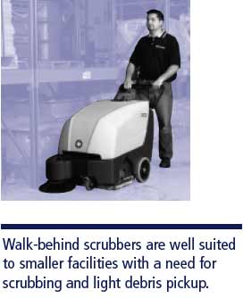 areas and a smaller walk-behind sweeper or scrubber for narrow aisles or to get