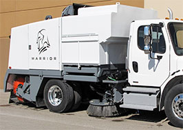 The Gladiator is a PM10 Certified dual engine mechanical street sweeper. The Gladiator is a champion in the toughest conditions. Its simple and rugged design makes it the ideal sweeper for construction jobs, mainline sweeping, and heavy debris situations.